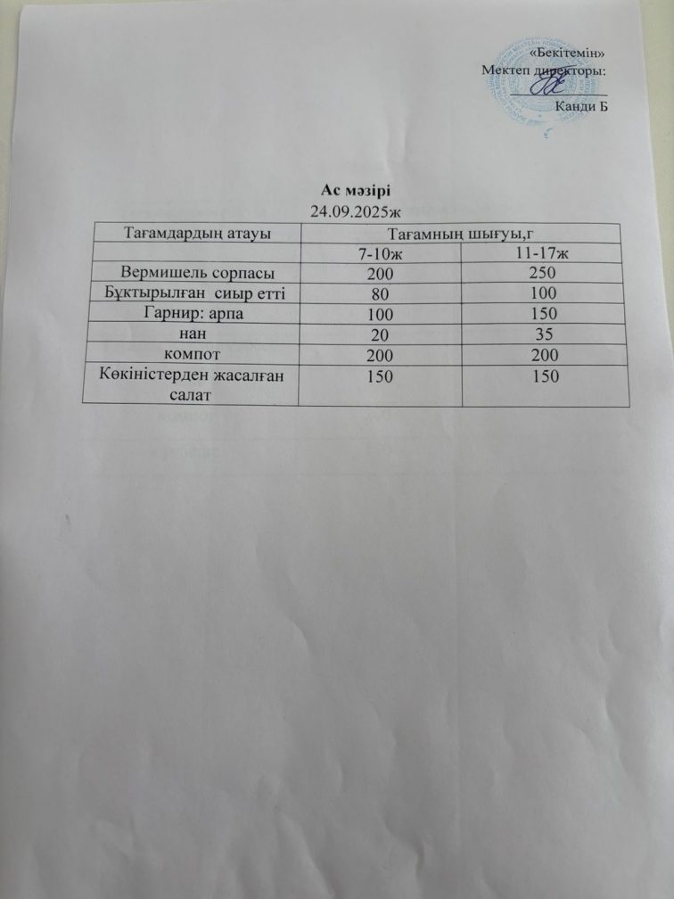 24.09.2025 күніне арналған ас мәзірі